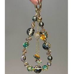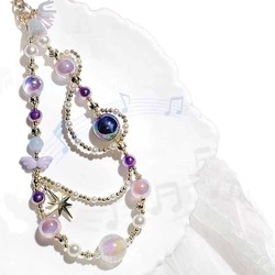 Catena per telefono cellulare con perline viola, unica ed elaborata, portachiavi e borsa per telefono cellulare