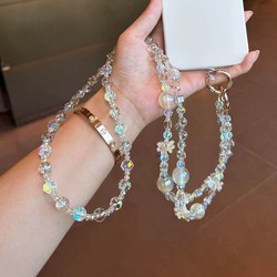 สายคล้องโทรศัพท์ประดับลูกปัดอะคริลิคความขุ่นมัวดอกไม้แก้วสายคล้องและจี้โทรศัพท์แบบคาดลำตัวยาวอเนกประสงค์